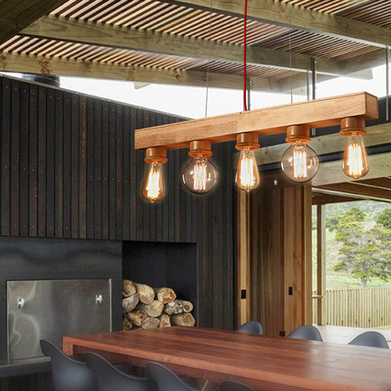 Lustre, lustre en bois de restaurant créatif de chambre à coucher lustre nordique